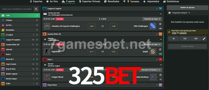 O 325bet oferece uma grande seleção de opções de apostas em e-sports com probabilidades competitivas